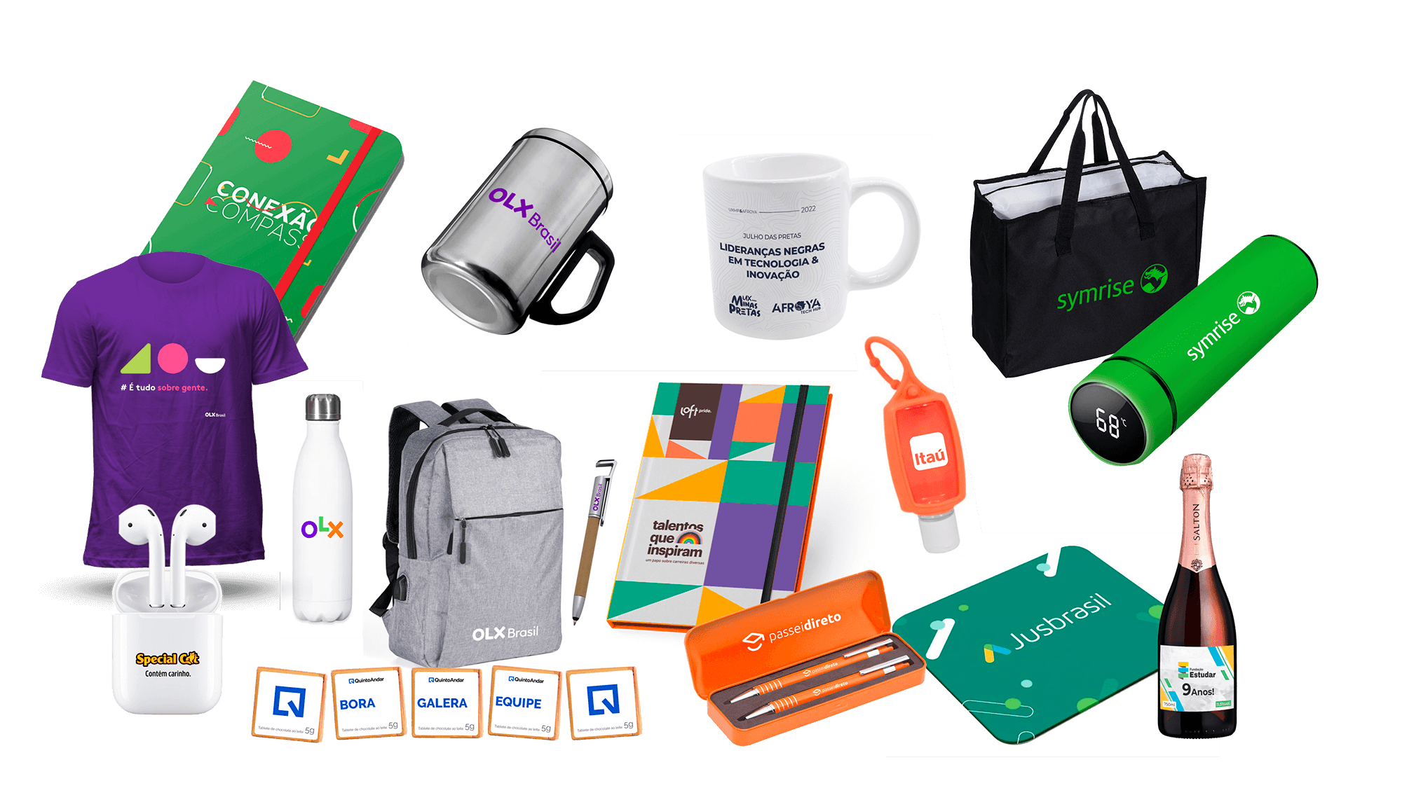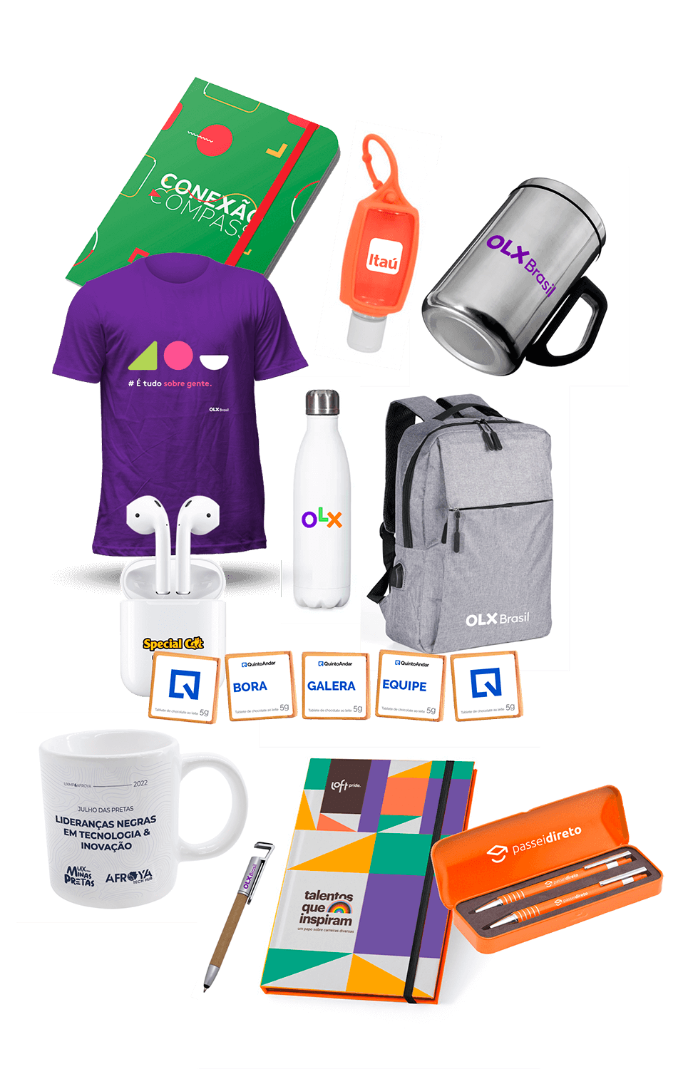 Você pode solicitar adicionar os produtos personalizados com a identidade da sua empresa, criar campanhas de brindes e premiações.